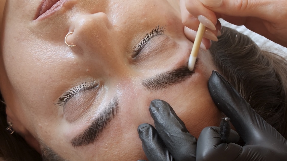Next, a setting solution is applied to lock the hairs into place, ensuring that they maintain their newfound shape. Finally, a nourishing serum is applied to hydrate and condition the brows, leaving them looking glossy and healthy.